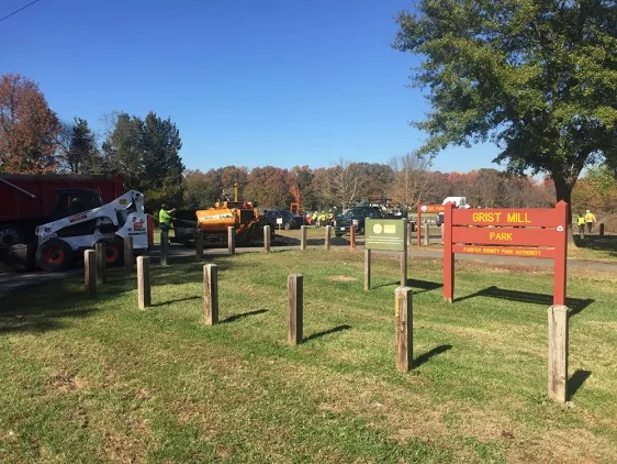 Grist Mill Park in AlexandriaFairfax County Park Authority contacted Finley to repave a parking lot on a very short notice. The parking lot is located at Grist Mill Park in Alexandria, Virginia where a new turf field has been installed. The Park Authority named the turf field in memory of Lt. Col. Gary F. Smith, who while working as a civilian employee of the Army was killed when American Airlines Flight 77 struck the Pentagon on 9/11. A ribbon cutting ceremony was held on Veterans Day for the official opening. Below is a link to the press release from the Fairfax County Park Authority.